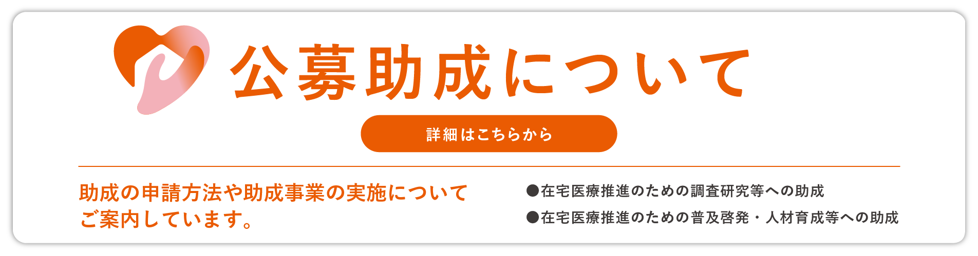 当財団では、病気や障がいがあっても在宅で生活を送ることができるよう、それぞれの地域に応じた在宅医療の推進や個人の尊厳を尊重した利用者本位の在宅医療が提供されることを目的に様々な事業を行っています。